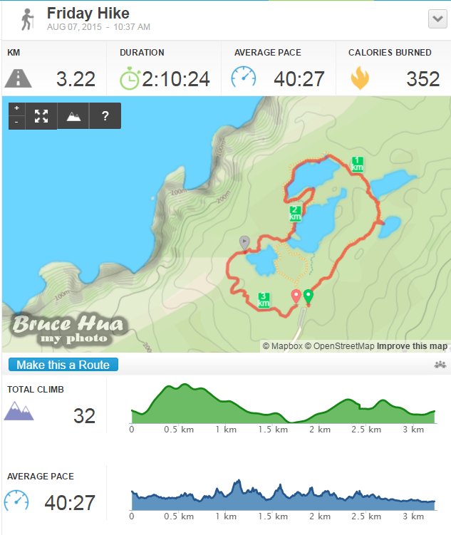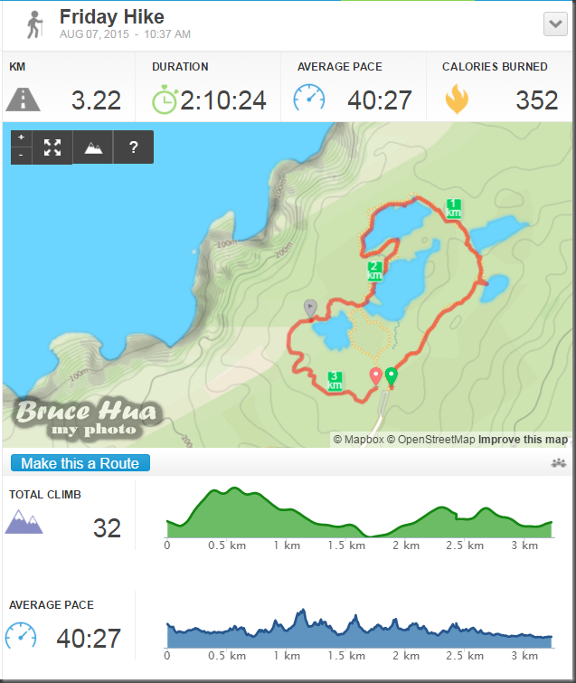 當本團將要離開三湖前往二湖之際,最幼齒的團員突然說要背背、不要走走了;看了一下RunKeeper的記錄,很不錯喔~她自己走了2.16公里的路程!