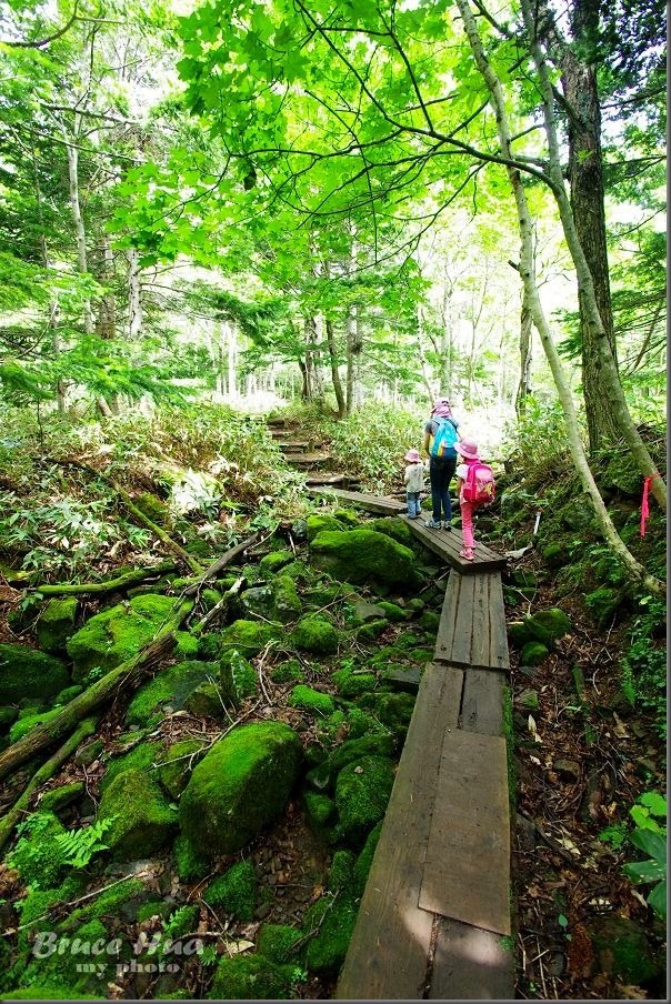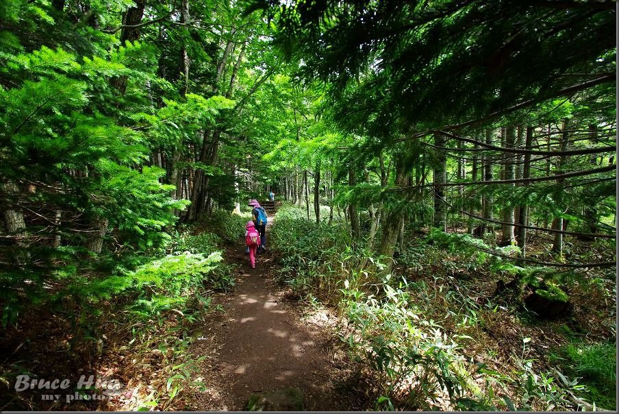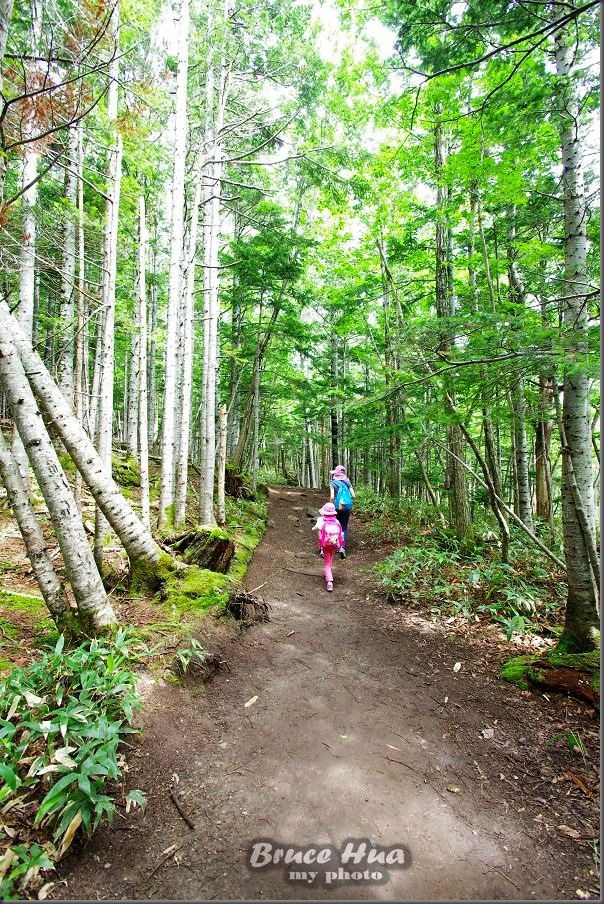 整條步道幾乎都是在樹林間行進,我想,就算是在大太陽天,也無須擔心防曬的問題!(塗防曬油或乳液,還得要挑選沒有味道的,尤其是有香甜味道的,避免吸引棕熊前來『覓食』~~~)