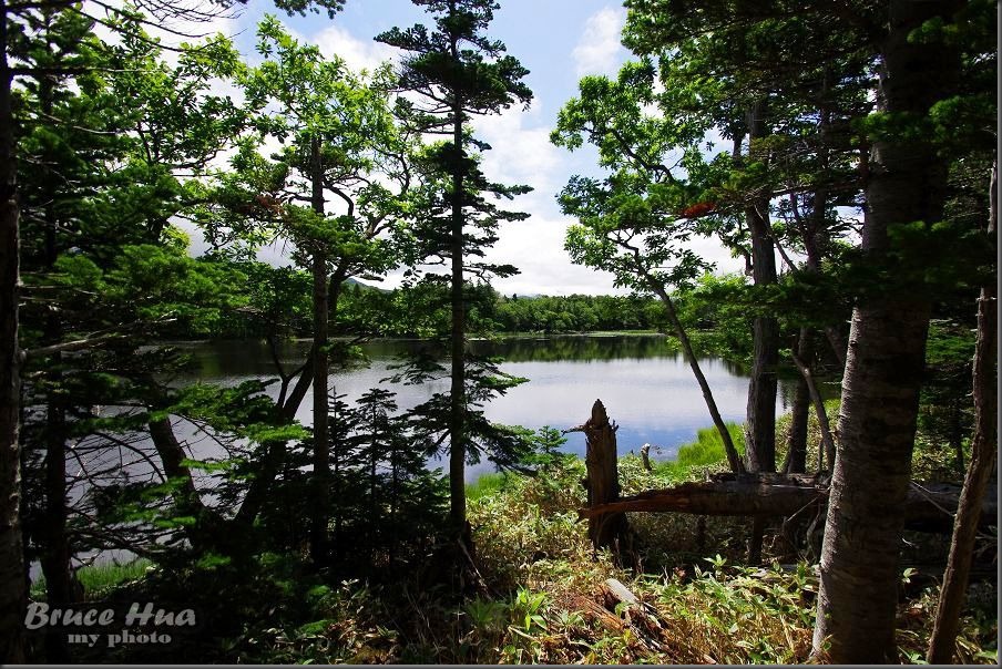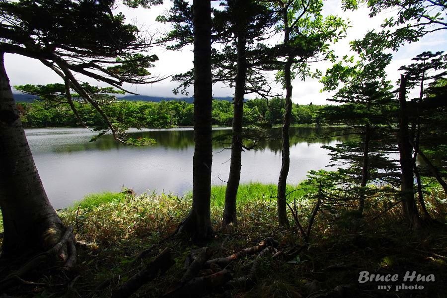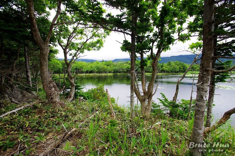在高架木棧道的觀景台上,就只能見到一湖以及背後的知床連山;這是去年來到這兒所僅能見到的景色。